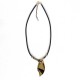 Création unique : collier réglable au médaillon en forme de feuille réalisé en grès émaillé et cuit à haute température. Monté sur buna cord noire avec de petites perles en métal argenté, fermoir et chainette de réglage pour allonger le collier.