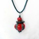 Collier fantaisie réglable tout en rondeur à porter en toute simplicité. Il est composé d'une grosse perle en céramique (2cm de diamètre ) avec des parties rouges émaillées et des parties noires enfumées, de petites perles rouges en raku et d' une perle plate intercalaire en bois. Il est monté sur coton noir avec 2 petites perles de préhension rouges (pour faciliter le réglage de 1cm de diamètre) également en raku. Longueur max : environ 35 cm. Longueur min : environ 25cm